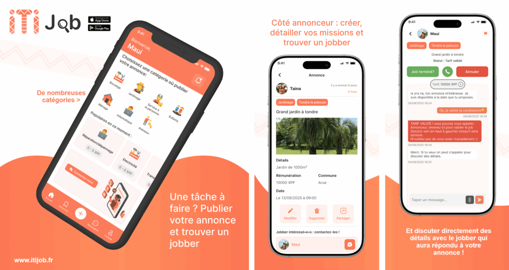 En effet, grâce Iti Job vous pouvez trouver une personne pour réaliser la mission que vous proposez. Il vous suffit de télécharger Iti Job (à télécharger ici en version Android, et ici en version Iphone), de créer un compte (c’est gratuit) et de passer votre annonce dans Iti Job, puis d’attendre que quelqu’un postule !